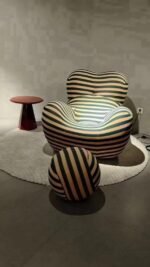 Kabil Curved grey 3 Seater Designer Imported Sofa luxury sofa, Boucle fabric