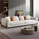 - MODERN DESIGN: Contemporary sofa featuring a unique curved silhouette with rounded edges and elegant wooden legs for a sophisticated aesthetic appeal