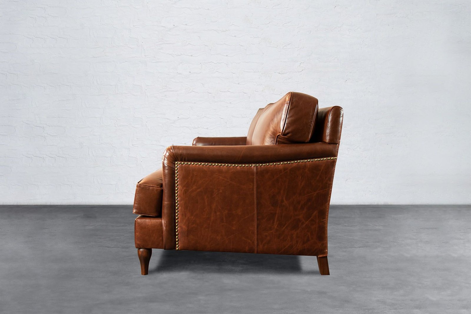 Kabil Round Arm 3 Seater Sofa – Vintage Brown